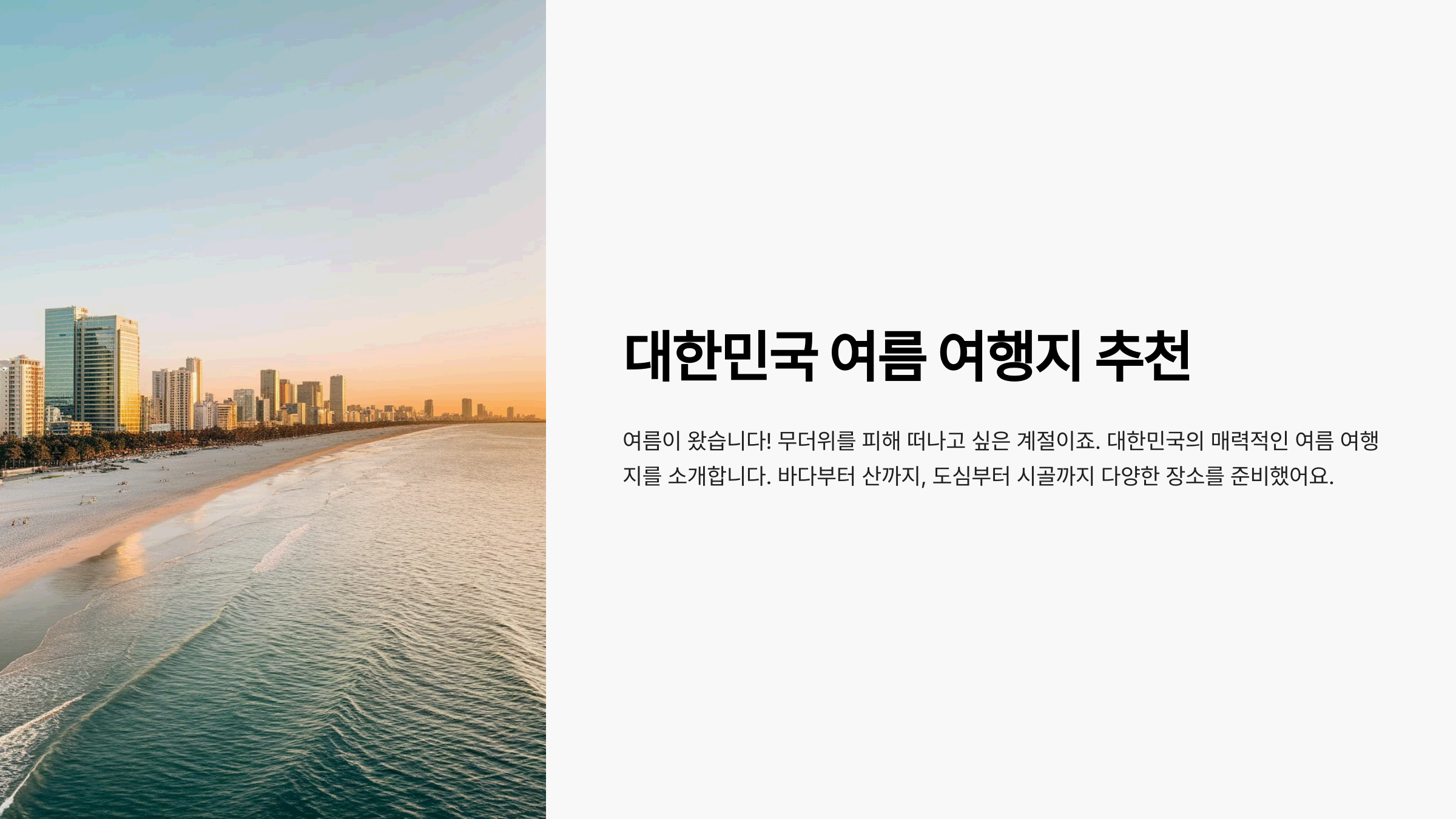 이번 여름에는 망설이지 말고, 마음이 가는 곳으로 발걸음 내딛어 보세요. 낯선 풍경, 따뜻한 사람들, 그리고 나만의 시간이 여러분을 기다리고 있답니다.