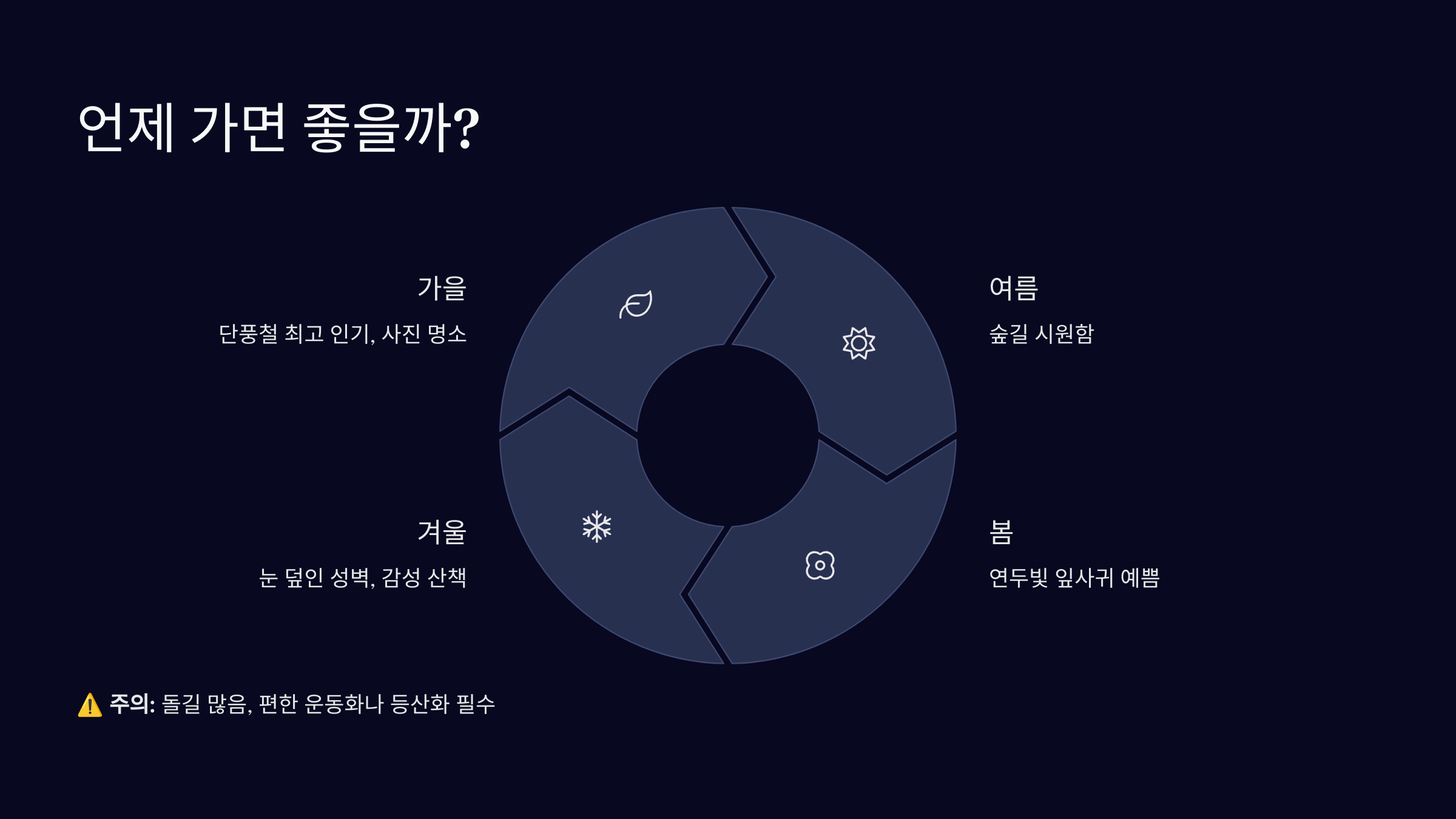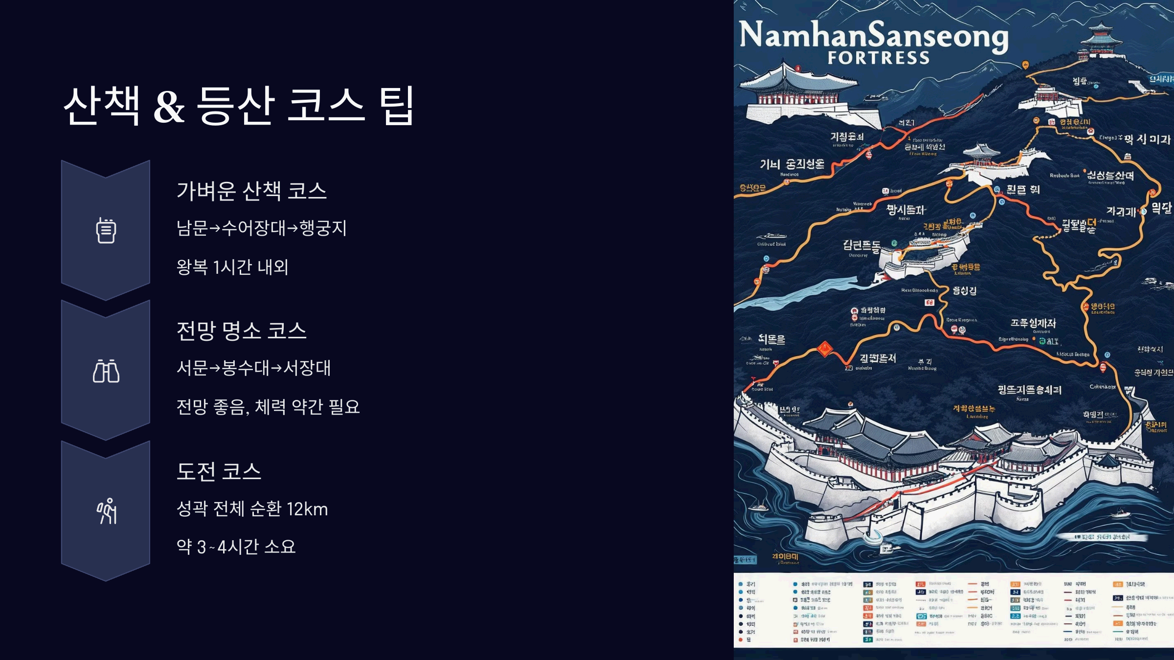 ⚠️ 주의: 성벽 코스는 돌길이 많아 미끄럽거나 험할 수 있어요. 편한 운동화나 등산화는 꼭 챙기세요!
