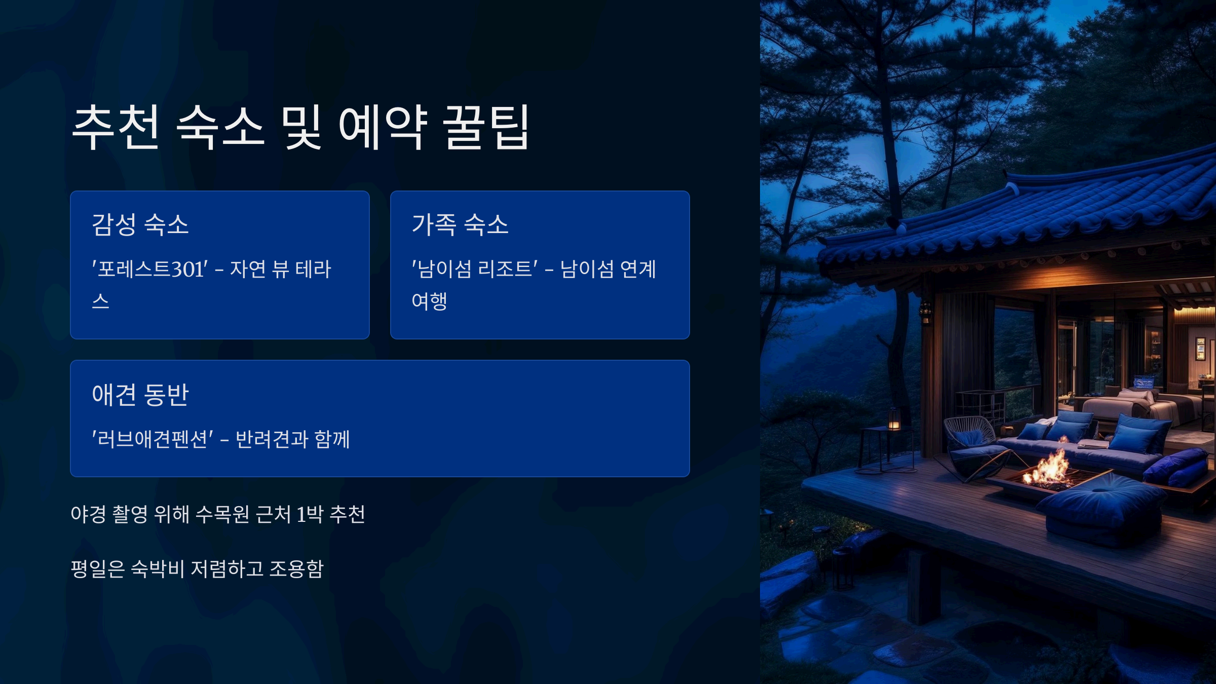 - 감성 숙소: '포레스트301' — 자연 뷰 테라스가 일품!