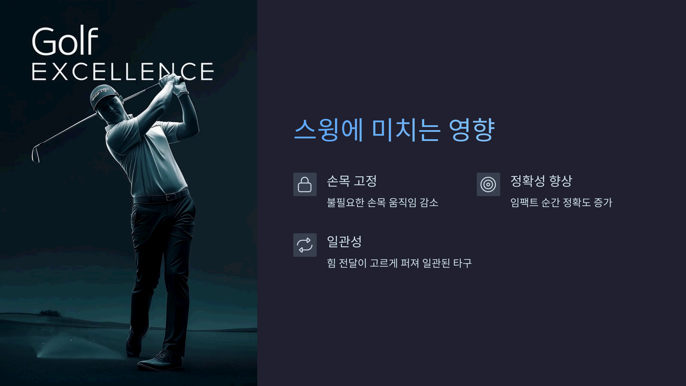 손목 고정이 너무 과하면 오히려 스윙이 뻣뻣해질 수 있어요.